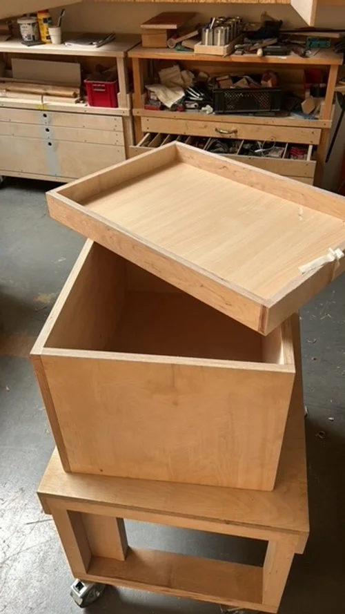 Voor dit project heb ik een kist op maat gemaakt die stevig genoeg is om mee te nemen naar de bouw. Er kan een afkortzaag in en er kan ook op gezaagd worden! multifunctioneel